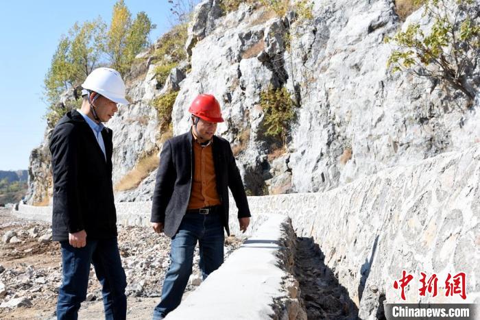 地質(zhì)五隊高級工程師居桂龍與太平山生態(tài)治理工程項目經(jīng)理郝敬國一起察看施工現(xiàn)場。 朱志庚 攝