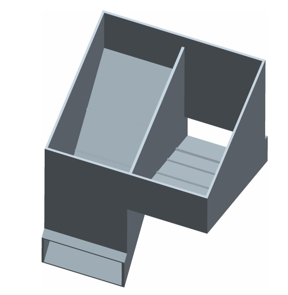 為解決這些問題,進(jìn)一步降低石料分料時(shí)對(duì)斗體內(nèi)壁的磨損,進(jìn)一步節(jié)約分料斗后期保養(yǎng)成本,公司結(jié)合生產(chǎn)實(shí)際、因地制宜設(shè)計(jì)了“人”型分料斗。新型分料斗在普通分料斗基礎(chǔ)上進(jìn)行改造,當(dāng)