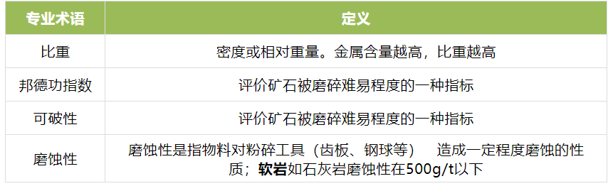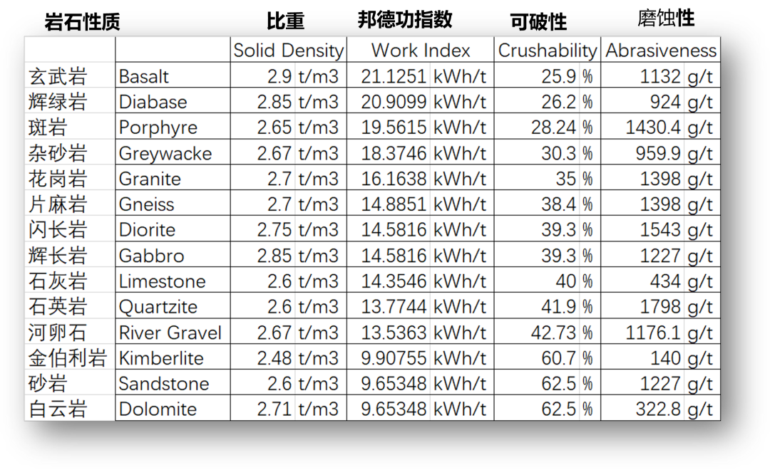 來料性質(zhì)中有幾個(gè)關(guān)鍵點(diǎn)值得注意:巖石類型包括比重、可破性、磨蝕性,入料最大粒度、含水量和含泥量。