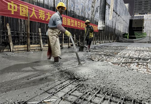 在中國人壽南方金融中心項(xiàng)目地下室樓板上,施工人員正在將一塊塊大小不一的石頭按照一定的要求,鋪在準(zhǔn)備施工澆筑的板面上,待板面鋪滿石頭后,施工人員熟練的用對(duì)講機(jī)下著指令,一聲轟鳴,混凝土從泵管里迸射而出,混凝土、石頭混合交融……“這些石頭與混凝土都來自項(xiàng)目上一些廢棄的混凝土塊,‘回爐重造’后能再次使用,大大減少環(huán)境污染。”項(xiàng)目技術(shù)總工介紹到。