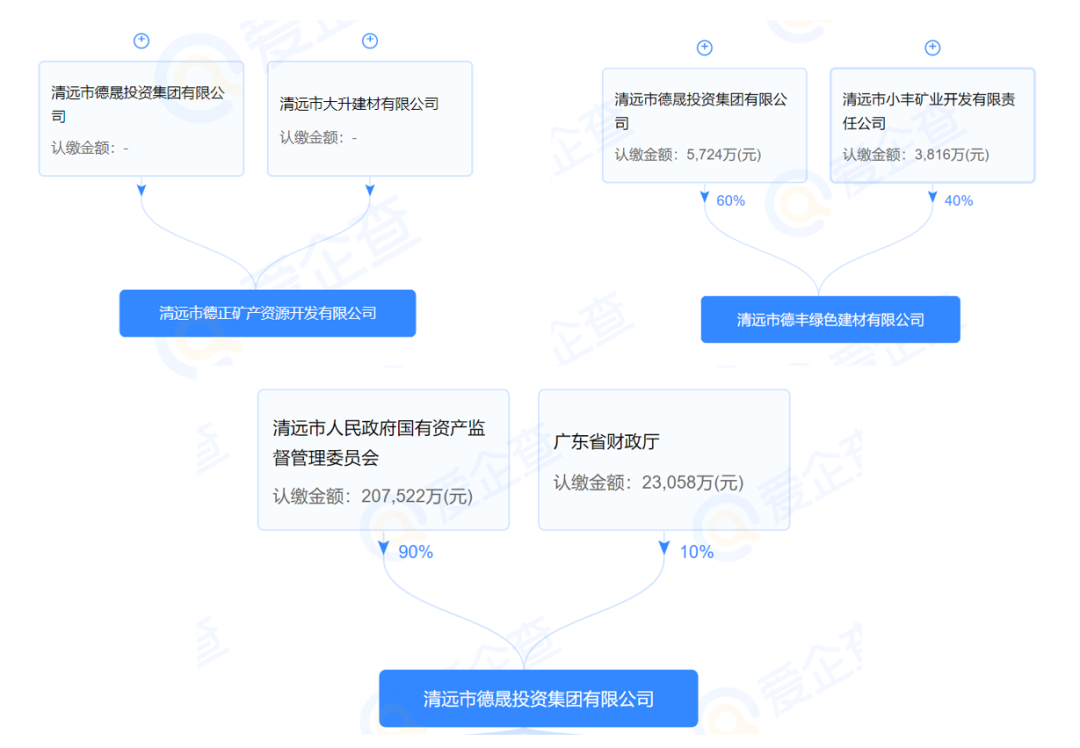 據(jù)了解,清遠(yuǎn)市德正礦產(chǎn)資源開(kāi)發(fā)有限公司與清遠(yuǎn)市德豐綠色建材有限公司均有清遠(yuǎn)市德晟投資集團(tuán)有限公司參與投資,清遠(yuǎn)市德晟投資集團(tuán)有限公司屬于清遠(yuǎn)市人民政府國(guó)有資產(chǎn)監(jiān)督管理委員會(huì)出資90%,廣東省財(cái)政廳出資10%的國(guó)有企業(yè)。