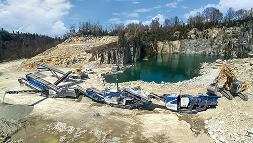 MOBICONE MCO 90(i) EVO2 圓錐式破碎設備和 MC 110(i) EVO2 顎式破碎設備以及一臺篩分設備和一臺堆料機電氣互鎖,配套使用