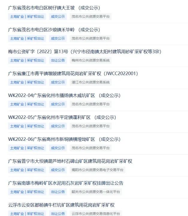 2022年12月20日-28日廣東地區(qū)成交的礦權(quán)