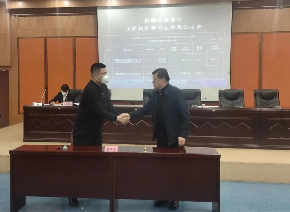 2023年1月4日,吐魯番市自然資源局在吐魯番市公共資源交易中心成功掛牌出讓了新疆鄯善縣尖山白云巖礦、新疆鄯善縣喀拉墩外圍一帶黑色冶金熔劑用石灰?guī)r礦和新疆托克遜縣租魯木臺(tái)Ⅰ、Ⅲ號(hào)石灰?guī)r礦(水泥用)等3宗采礦權(quán),現(xiàn)場(chǎng)簽訂了《成交確認(rèn)書(shū)》,掛牌出讓起始價(jià)2589.32萬(wàn)元,成交價(jià)2.3929億元,超出起始價(jià)2.1343億元。吐魯番市自然資源局、縣自然資源局領(lǐng)導(dǎo)、相關(guān)科室工作人員、代理機(jī)構(gòu)、競(jìng)買(mǎi)人代表、吐魯番市首信公證處工作人員等30余人參加了掛牌出讓活動(dòng)。