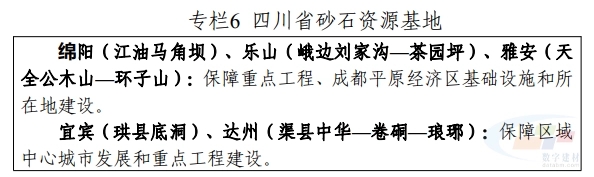 明確區(qū)域建筑用砂石資源保障方向。綿陽(yáng)、樂山、雅安等市, 通過區(qū)域協(xié)調(diào),為川藏鐵路、成渝中線等重點(diǎn)工程、成都平原地 區(qū)基礎(chǔ)設(shè)施和城市建設(shè)提供資源保障;川東、川南和攀西地區(qū)砂 石資源供給圍繞區(qū)域中心城市發(fā)展和保障鐵路、公路、機(jī)場(chǎng)等重 點(diǎn)項(xiàng)目建設(shè)布局,涼山、巴中等交通不便地區(qū)為保障民生工程建設(shè)可適量設(shè)置建筑用砂石開采規(guī)劃區(qū)塊,其他地區(qū)原則上只設(shè)置 建筑用砂石集中開采區(qū);川西北生態(tài)經(jīng)濟(jì)區(qū)嚴(yán)格落實(shí)長(zhǎng)江黃河上 游生態(tài)屏障和國(guó)家生態(tài)安全要求,減少露天建筑用砂石開采對(duì)高 原生態(tài)環(huán)境影響,鼓勵(lì)甘孜、阿壩在重大基礎(chǔ)設(shè)施建設(shè)沿線布局 建筑用砂石資源調(diào)入儲(chǔ)備區(qū),做好砂石資源儲(chǔ)備工作,保障重大 基礎(chǔ)設(shè)施建設(shè)需求。鼓勵(lì)和支持綜合利用廢石、礦碴和