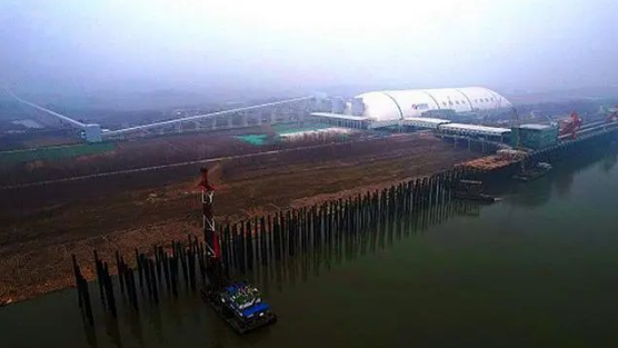 項(xiàng)目建成后可在長(zhǎng)江中下游區(qū)域建材骨料市場(chǎng),為房屋、道路、隧道等建筑工程提供高品質(zhì)綠色砂石骨料,為湖北省穩(wěn)增長(zhǎng)、調(diào)結(jié)構(gòu)、惠民生做出重要貢獻(xiàn)。其中,碼頭陸域堆場(chǎng)布置于長(zhǎng)江大堤內(nèi)側(cè),平行長(zhǎng)江成一線(xiàn)布置,分兩期進(jìn)行建設(shè)。成品堆料區(qū)采用新型工藝氣膜結(jié)構(gòu)進(jìn)行封閉,一期氣膜倉(cāng)內(nèi)堆存粒徑為0-4.75毫米和16-25毫米的建筑骨料,二期氣膜倉(cāng)內(nèi)堆存粒徑為5-10毫米和10-16毫米的建筑骨料,二期堆場(chǎng)建設(shè)完畢后堆場(chǎng)總?cè)莘e將超過(guò)百萬(wàn)立方米。