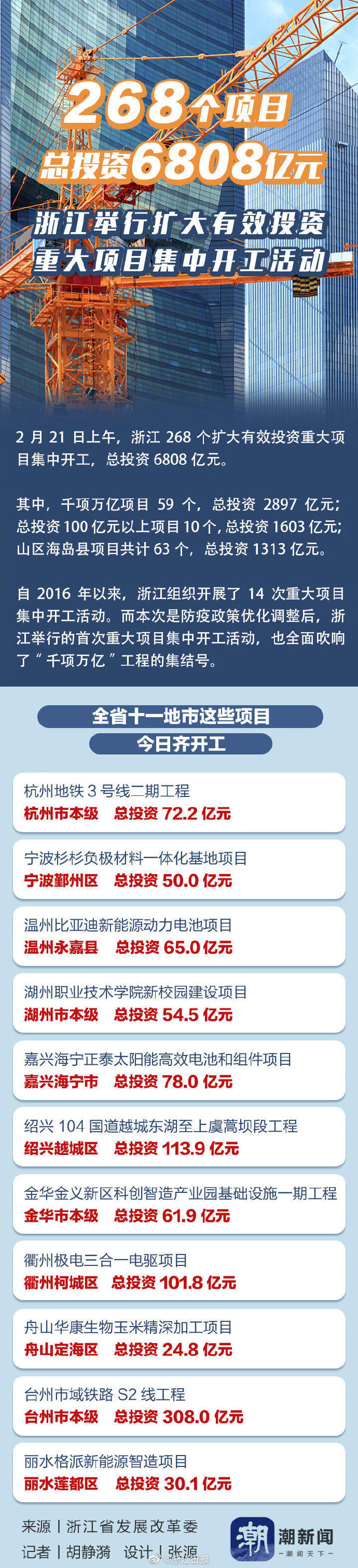 總投資6808億元!浙江268個(gè)擴(kuò)大有效投資重大項(xiàng)目集中開(kāi)工