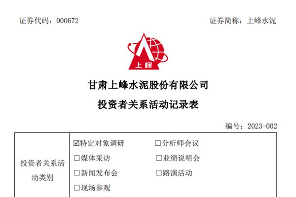 2023年2月27日、2023年3月2日、3日,上峰水泥接受財(cái)通證券等機(jī)構(gòu)調(diào)研,公司董秘瞿輝、證券事務(wù)代表?xiàng)钚駞⑴c接待,并回答了調(diào)研機(jī)構(gòu)提出的問(wèn)題。據(jù)悉,上峰水泥曾在2022年三季報(bào)中披露,