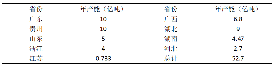 砂石骨料總年產(chǎn)能如下表所示,總產(chǎn)能近53億噸/年9省份2025年砂石規(guī)劃產(chǎn)能表