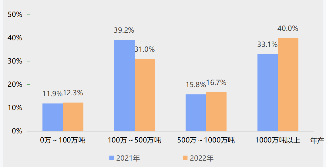 新設(shè)砂石礦權(quán)中,資源儲(chǔ)量大于1000萬(wàn)噸的超大型砂石礦權(quán)、資源儲(chǔ)量在500萬(wàn)~1000萬(wàn)噸之間的大型砂石礦權(quán),占比分別提升至40.0%、16.7%,占比均較2021年有所提升。另外,資源儲(chǔ)量在100萬(wàn)~500萬(wàn)噸之間的中型砂石礦權(quán)占比為31.0%;資源儲(chǔ)量在100萬(wàn)噸以下的小型砂石礦權(quán)占比為12.3%,中型、小型砂石礦權(quán)占比均較2021年有所下降。