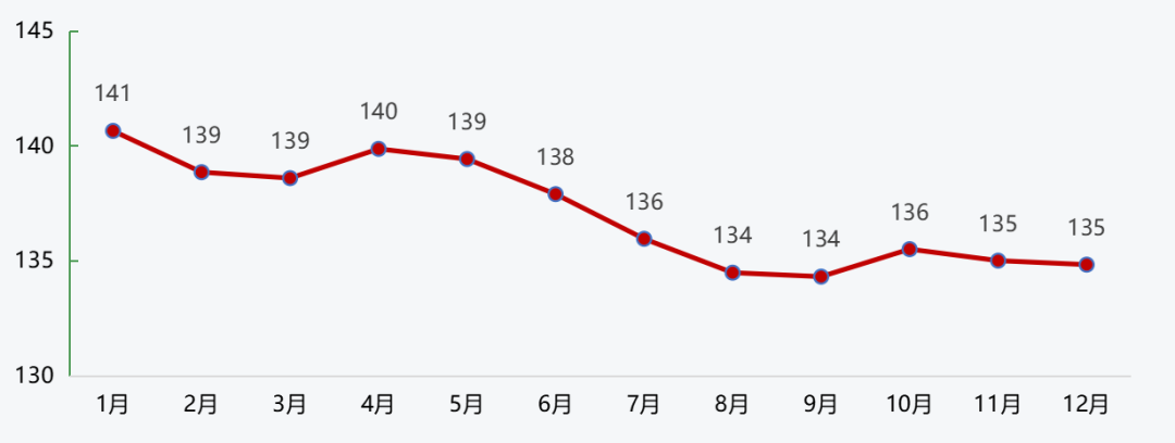 2022年12月,全國(guó)機(jī)制砂均價(jià)100元/噸,12月同比下跌5.0%;天然砂均價(jià)135元/噸,12月同比下跌8.4%。