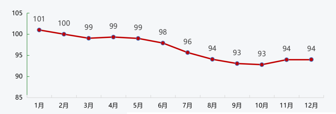 2022年12月,碎石均價(jià)94元/噸,12月同比下跌7.9%。