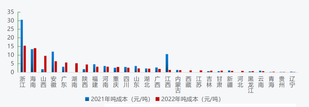 新設(shè)礦權(quán)出讓成交價(jià)格方面,由于各地政府對(duì)砂石礦權(quán)出讓的調(diào)控力度和競(jìng)買人參與競(jìng)拍的競(jìng)爭(zhēng)情況不同,我國(guó)各省份新設(shè)礦權(quán)出讓成交價(jià)格差異較大。浙江、海南新設(shè)砂石采礦權(quán)出讓成交價(jià)分別為15.5元/噸、14.0元/噸,價(jià)格居全國(guó)前兩位,同比分別下跌49%、上漲4%;山西、安徽、廣東、湖南新設(shè)砂石采礦權(quán)出讓成交價(jià)在5~10元/噸之間;陜西、福建、河南、重慶、四川、山東、湖北、廣西、江西、內(nèi)蒙古、西藏、江蘇新設(shè)砂石采礦權(quán)出讓成交價(jià)在1~5元/噸之間;吉林、甘肅、新疆、河北、黑龍江、云南、青海、貴州、遼寧新設(shè)砂石采礦權(quán)出讓成交價(jià)在1元/噸以內(nèi)。
