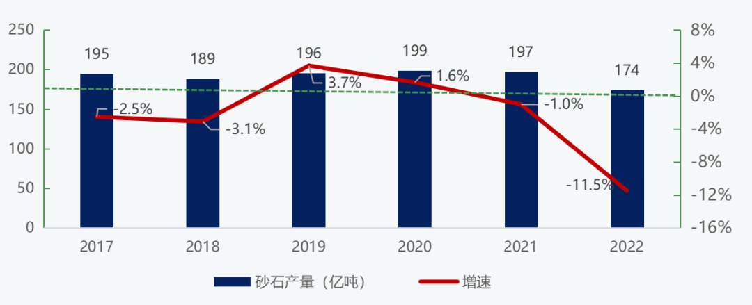 2017-2022年我國(guó)砂石產(chǎn)量變化情況