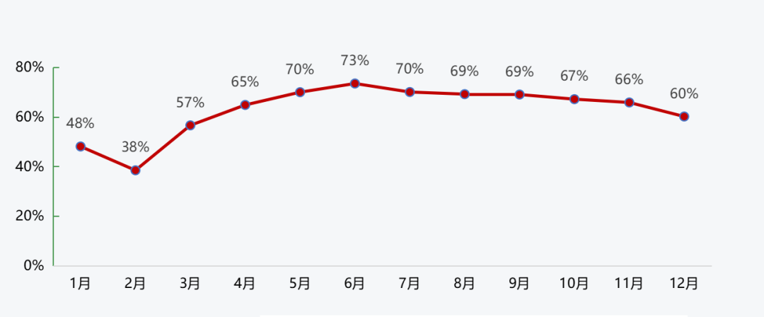 2022年砂石企業(yè)開機(jī)率和產(chǎn)能利用率走勢(shì)較為一致,均在年初、年尾出現(xiàn)回落,年中保持較高水平。一季度,受春節(jié)假期、雨雪天氣等影響,開機(jī)率、產(chǎn)能利用率均較低,2月更是分別降至38%、19%;二季度疫情逐漸緩解,三季度工程旺季到來(lái),二、三季度開機(jī)率、產(chǎn)能利用率均保持較高水平,6月更是達(dá)到了年度最高水平,分別升至73%、39%;進(jìn)入四季度,受到雨雪天氣到來(lái)以及疫情的反復(fù),雙重因素的影響導(dǎo)致開機(jī)率、產(chǎn)能利用率均出現(xiàn)回落,12月,分別降至60%、35%。