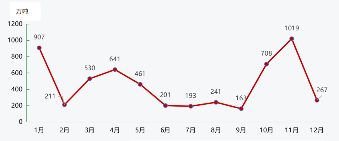根據(jù)對(duì)重點(diǎn)砂石企業(yè)監(jiān)測(cè)顯示,重點(diǎn)砂石企業(yè)在四季度日均出貨量高位運(yùn)行,其他時(shí)間均保持低位。一季度,春節(jié)假期,砂石礦山廠停工,疊加需求不足等因素,重點(diǎn)砂石企業(yè)日均出貨量低位運(yùn)行;二季度,隨著疫情的好轉(zhuǎn),砂石運(yùn)輸條件的改善,重點(diǎn)砂石企業(yè)日均出貨量有所回升,4月升至641萬(wàn)噸/日;三季度,疫情反復(fù)、施工項(xiàng)目進(jìn)度緩慢影響砂石需求,重點(diǎn)砂石企業(yè)日均出貨量持續(xù)回落,9月降至163萬(wàn)噸/日;四季度,隨著工程旺季的到來(lái),砂石需求回升,重點(diǎn)砂石企業(yè)日均出貨量達(dá)到年度最高值,11月達(dá)到了1019萬(wàn)噸/日。