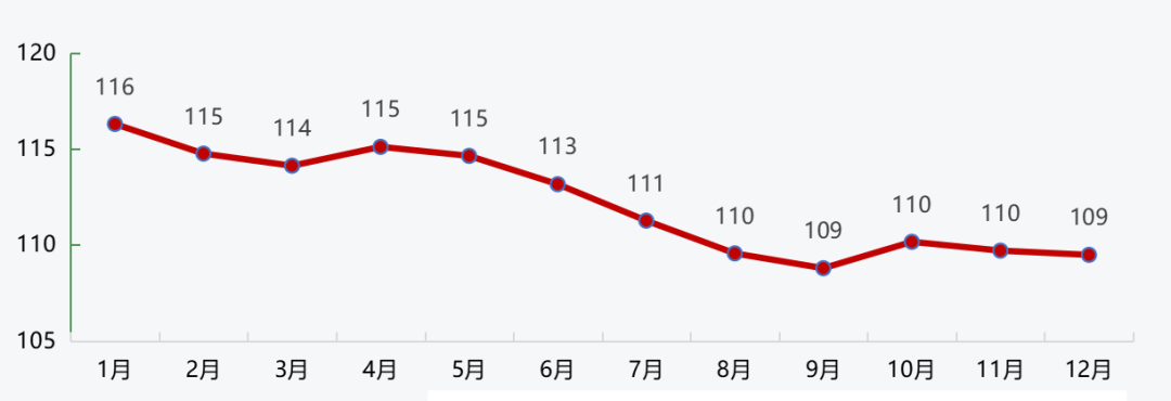 據(jù)中國(guó)砂石協(xié)會(huì)大數(shù)據(jù)中心顯示,2022年12月,全國(guó)砂石綜合均價(jià)為109元/噸,12月同比下跌7.0%。