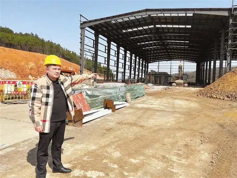 筱啟公司總經(jīng)理助理謝勁介紹正在建設(shè)的6號(hào)廠房。
