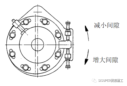 由于水平軸箱是偏心安裝的,所以需要通過(guò)轉(zhuǎn)動(dòng)水平軸箱的位置來(lái)調(diào)整齒輪間隙。