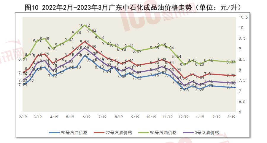 2023年3月,90號、92號、95號汽油和0號柴油價格在月中均有輕微下跌,3月18日國內成品油價格下跌約0.08元/升。成品油價格下跌,小幅降低了砂石的運輸成本,運費有所下降。