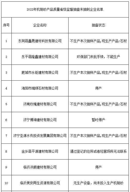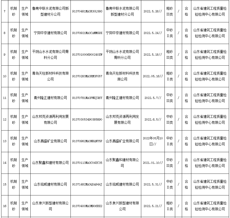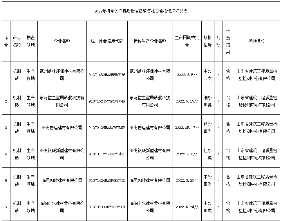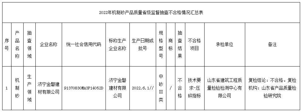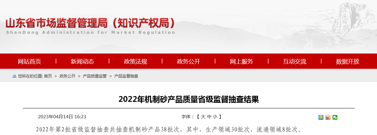 2023年4月14日,山東省市場(chǎng)監(jiān)督管理局網(wǎng)站公布2022年機(jī)制砂產(chǎn)品質(zhì)量省級(jí)監(jiān)督抽查結(jié)果。