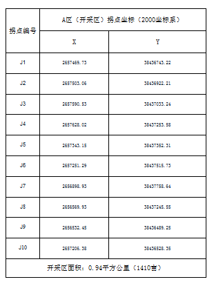 (二)礦區(qū)范圍拐點(diǎn)坐標(biāo)為: