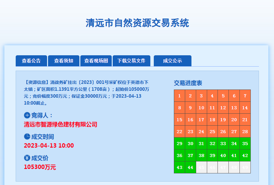 最終競(jìng)得人:清遠(yuǎn)市智源綠色建材有限公司;