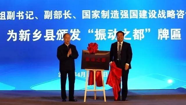 會上,協(xié)會副理事長、大連重工裝備集團有限公司黨委副書記、總經(jīng)理田長軍宣讀了授予河南省新鄉(xiāng)縣“振動之都”的決定,大會隆重舉行揭牌儀式,蘇波副部長為“振動之都”揭牌,并為新鄉(xiāng)縣縣委書記祝顯成頒發(fā)“振動之都”牌匾。揭牌儀式后,祝顯成書記發(fā)表講話。