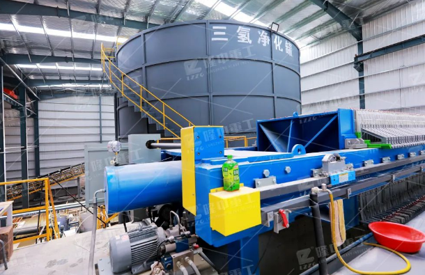 該車間采用的板式壓濾機(jī),該設(shè)備工作效率高、壓制水分小、操作方便等優(yōu)點(diǎn),深受用戶好評(píng)。