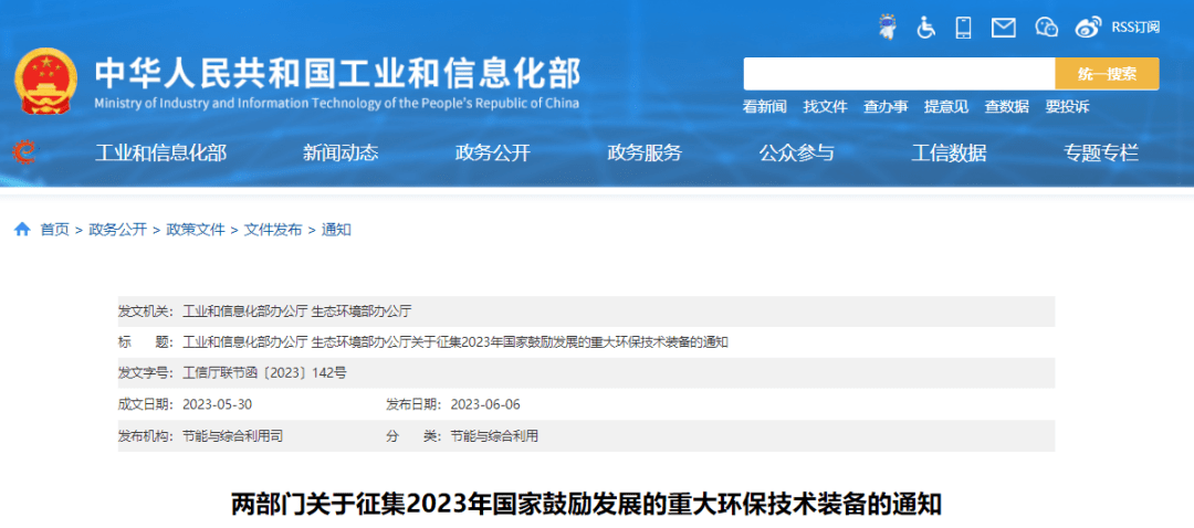 關(guān)于征集2023年國(guó)家鼓勵(lì)發(fā)展的重大環(huán)保技術(shù)裝備的通知工信廳聯(lián)節(jié)函〔2023〕142號(hào)