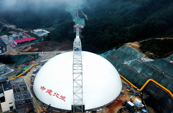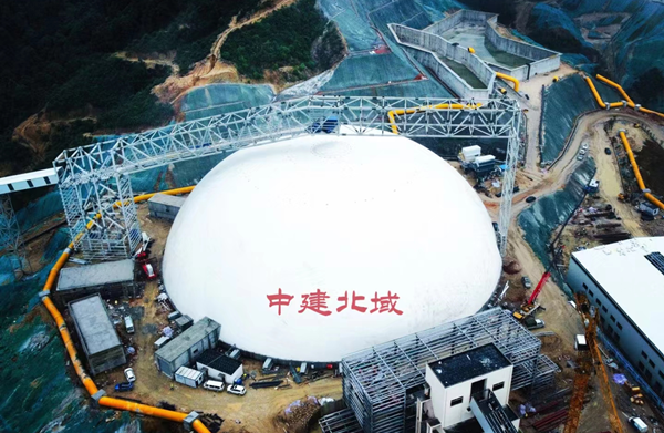 2023年6月,在江西省宜春市內(nèi),一座巨型的“白饅頭”建筑在一天內(nèi)陡然佇立起來。這是由中建北域建設(shè)工程有限公司(簡稱“中建北域”)承建的鋰礦智能氣膜料棚項(xiàng)目,該項(xiàng)目的成功充膜標(biāo)志著國內(nèi)第一座圓形高空皮帶氣膜料棚的正式誕生。此次全封閉、大空間、智能化環(huán)保料棚的建成將為企業(yè)提質(zhì)增效、綠色發(fā)展提供更好的條件和空間。