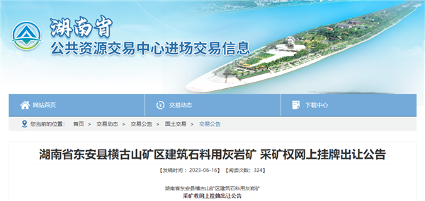 該礦位于東安縣井頭圩鎮(zhèn)、石期鎮(zhèn),礦區(qū)控制資源量7708.2萬噸,生產(chǎn)規(guī)模為500萬噸/年(186.6萬方/年),出讓年限16年(礦山服務(wù)年限加1年基建期),起始價(jià)2.68億元。