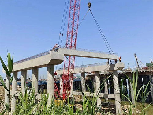 本項目當(dāng)前有管理人員和作業(yè)工人合計290人,投入大型起重船舶6臺,鉆機40臺。項目目前已完成全部陸上樁基施工,正進行水上樁基施工,樁基已完成總量625根的80%,同時開展碼頭橫梁施工和變電所平臺澆筑施工等工序。本項目水工建筑物標(biāo)段預(yù)計將于明年8月完成交工。