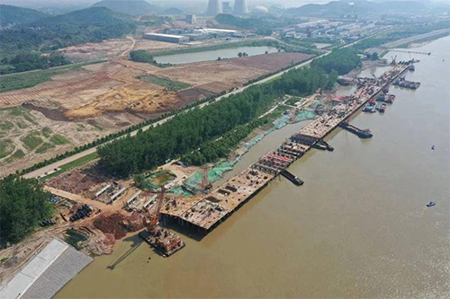 碧水青山,大江東去。銀砂灣碼頭宛若一條紐帶,串聯(lián)起九江航運快速崛起的水上貨運線。五月以來,重慶工程局九江銀砂灣項目多個關(guān)鍵工序或進入規(guī)模化建設(shè)新階段,或進入建設(shè)進度的快車道。碼頭主體形象已日漸形成,項目建設(shè)按下“快速鍵”,進入關(guān)鍵期。
