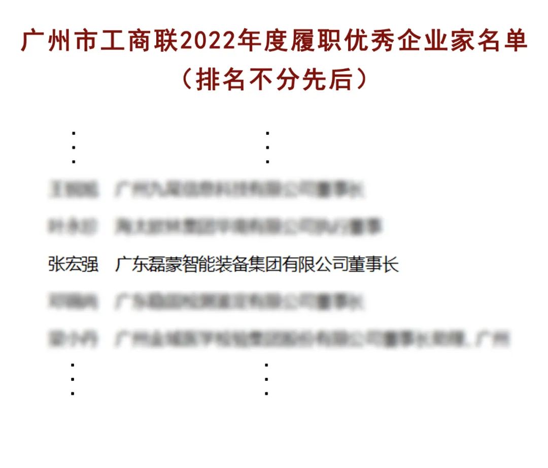 董事長(zhǎng)張宏強(qiáng)入選為廣州市工商聯(lián)2022年度履職優(yōu)秀企業(yè)家名單