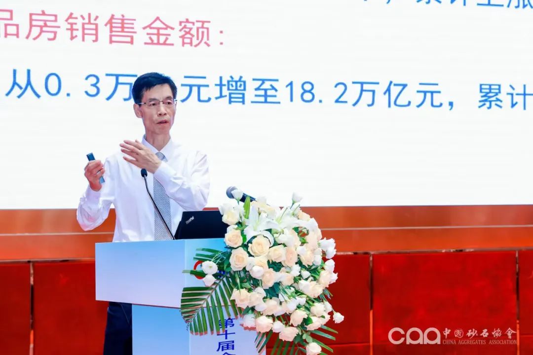 中國(guó)砂石協(xié)會(huì)副會(huì)長(zhǎng)、專家委員會(huì)主任宋少民主持中國(guó)砂石協(xié)會(huì)會(huì)長(zhǎng)胡幼奕作題為《當(dāng)前經(jīng)濟(jì)形勢(shì)和砂石供應(yīng)的高質(zhì)量發(fā)展》的主旨報(bào)告。