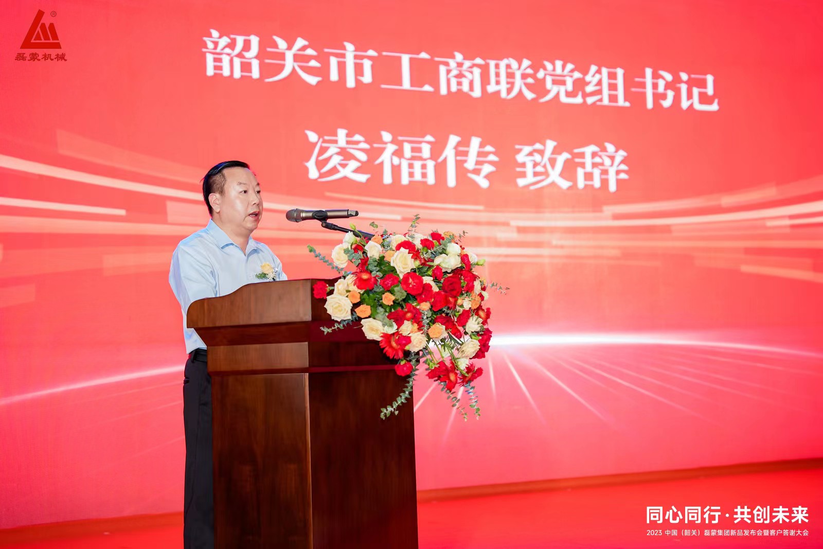 韶關(guān)市工商聯(lián)黨組書記凌福傳出席大會(huì)并致辭,對(duì)磊蒙集團(tuán)近年來的發(fā)展以及董事長(zhǎng)張宏強(qiáng)的社會(huì)責(zé)任心表示信賴和認(rèn)可,同時(shí)為本次新品發(fā)布會(huì)表示了熱烈的祝賀!