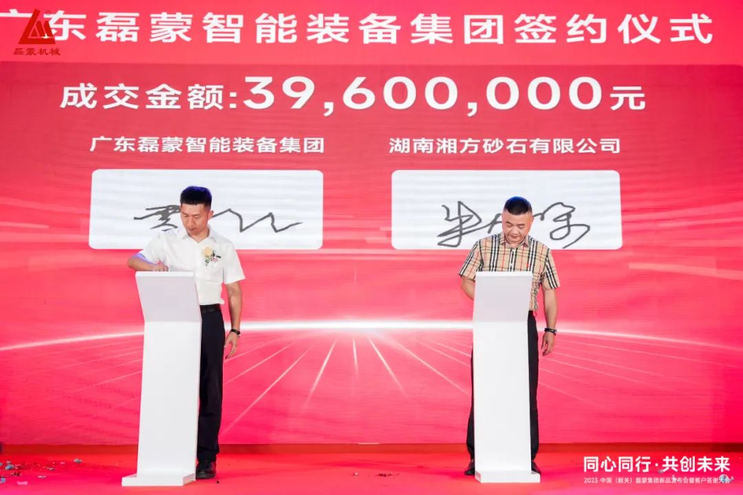廣東磊蒙智能裝備集團(tuán)有限公司與湖南湘方砂石有限公司6家企業(yè)進(jìn)行現(xiàn)場(chǎng)簽約,成交金額:3960萬元。