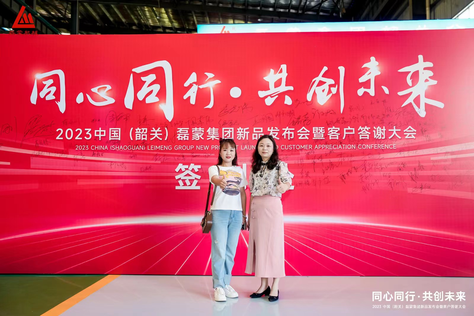 環(huán)球破碎機(jī)網(wǎng)營(yíng)銷總監(jiān)商倩(左)出席開幕儀式與磊蒙集團(tuán)總經(jīng)理文忠菊(右)簽到墻合影