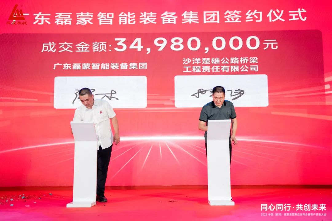 廣東磊蒙智能裝備集團(tuán)有限公司與沙洋楚雄公路橋梁工程責(zé)任有限公司進(jìn)行現(xiàn)場(chǎng)簽約,成交金額:3498萬元。