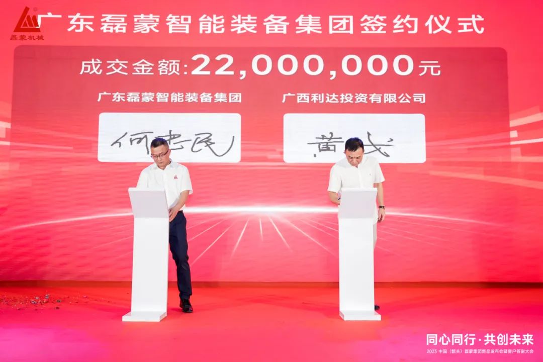 廣東磊蒙智能裝備集團(tuán)有限公司與廣西利達(dá)投資有限公司進(jìn)行現(xiàn)場(chǎng)簽約,成交金額:2200萬元。