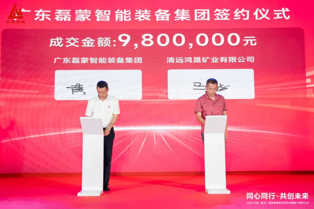 廣東磊蒙智能裝備集團(tuán)有限公司與清遠(yuǎn)市鴻晟礦業(yè)有限公司進(jìn)行現(xiàn)場(chǎng)簽約,成交金額:980萬元。