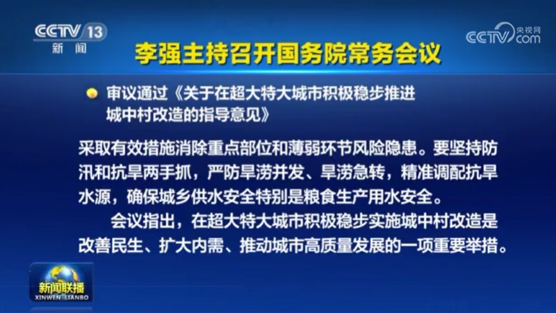 會(huì)議指出,在超大特大城市積極穩(wěn)步實(shí)施城中村改造是改善民生、擴(kuò)大內(nèi)需、推動(dòng)城市高質(zhì)量發(fā)展的一項(xiàng)重要舉措。要堅(jiān)持穩(wěn)中求進(jìn)、積極穩(wěn)妥,優(yōu)先對(duì)群眾需求迫切、城市安全和社會(huì)治理隱患多的城中村進(jìn)行改造,成熟一個(gè)推進(jìn)一個(gè),實(shí)施一項(xiàng)做成一項(xiàng),真正把好事辦好、實(shí)事辦實(shí)。要堅(jiān)持城市人民政府負(fù)主體責(zé)任,加強(qiáng)組織實(shí)施,科學(xué)編制改造規(guī)劃計(jì)劃,多渠道籌措改造資金,高效綜合利用土地資源,統(tǒng)籌處理各方面利益訴求,并把城中村改造與保障性住房建設(shè)結(jié)合好。要充分發(fā)揮市場(chǎng)在資源配置中的決定性作用,更好發(fā)揮政府作用,加大對(duì)城中村改造的政策支持,積極創(chuàng)新改造模式,鼓勵(lì)和支持民間資本參與,努力發(fā)展各種新業(yè)態(tài),實(shí)現(xiàn)可持續(xù)運(yùn)營(yíng)。