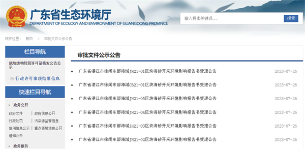 7月26日,廣東又有海砂項(xiàng)目迎來新進(jìn)展,湛江6區(qū)塊原礦體積約4770萬方回填用海砂環(huán)評受理。據(jù)悉,7月24日,廣東生態(tài)環(huán)境廳批復(fù)茂名、汕頭合計(jì)7個區(qū)塊海砂開采項(xiàng)目環(huán)評報告。短短3天內(nèi),13區(qū)塊海砂項(xiàng)目迎來新進(jìn)展,合計(jì)儲量約2.04億方,廣東加速海砂開采資源釋放。