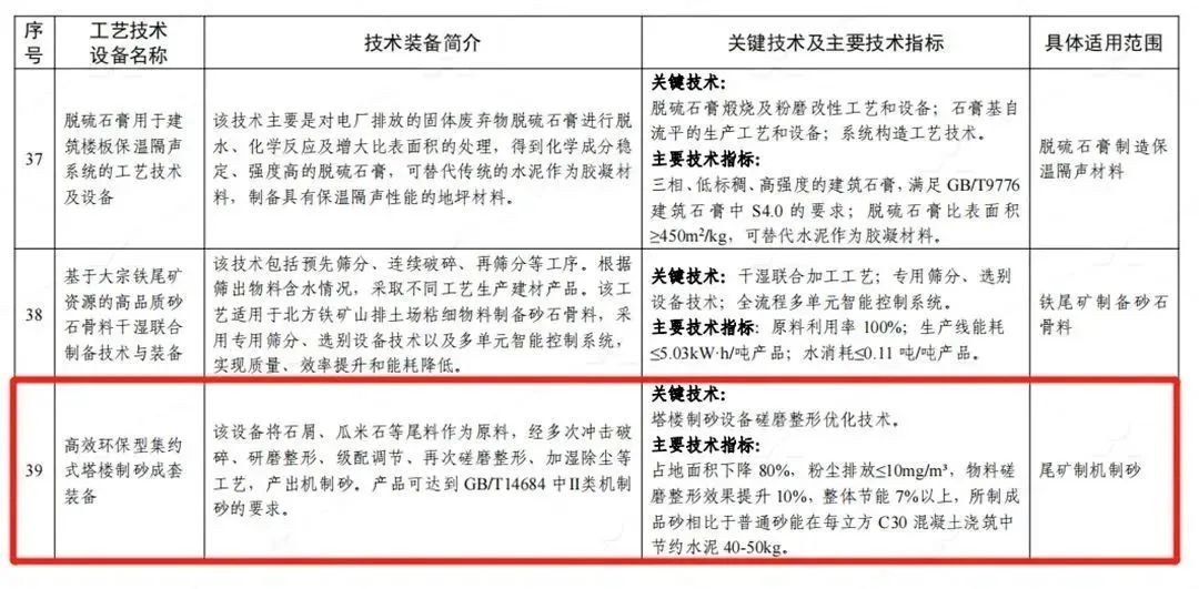 建筑垃圾破碎篩分站、高效環(huán)保型集約式塔樓制砂成套裝備”兩項(xiàng)技術(shù)裝備成功入選《國(guó)家工業(yè)資源綜合利用先進(jìn)適用工藝技術(shù)設(shè)備目錄(2023年版)》。