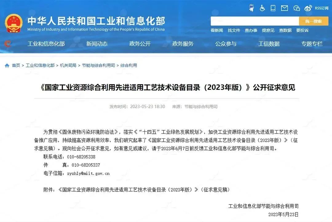 為貫徹落實(shí)《中華人民共和國(guó)固體廢物污染環(huán)境防治法》,加快工業(yè)資源綜合利用先進(jìn)適用技術(shù)裝備推廣應(yīng)用,持續(xù)提高資源利用效率和水平,工業(yè)和信息化部、國(guó)家發(fā)展和改革委員會(huì)等共同編制了《國(guó)家工業(yè)資源綜合利用先進(jìn)適用工藝技術(shù)設(shè)備目錄(2023年版)》。