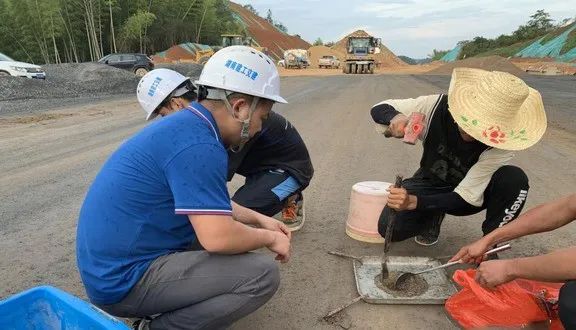 技術(shù)人員在檢測(cè)路基墊層的鋪筑指標(biāo)