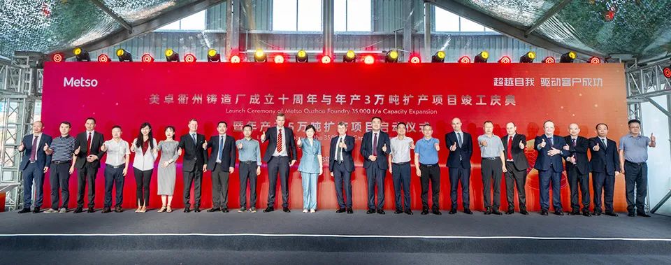 2023年8月8日上午,美卓衢州鑄造廠成立十周年與年產(chǎn)3萬噸擴(kuò)產(chǎn)項(xiàng)目竣工慶典暨年產(chǎn)3.5萬噸擴(kuò)產(chǎn)項(xiàng)目啟動(dòng)儀式在美卓衢州鑄造廠舉行。