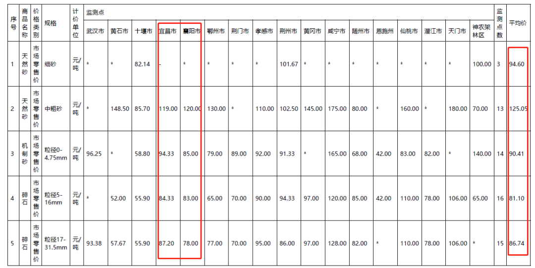 目前,據中國砂石協會從湖北省發展改革委獲悉,7月湖北省機制砂均價90.41元/噸,5-16mm碎石均價81.1元/噸。本次出讓的兩宗礦權位于宜昌市和襄陽市,目前兩地機制砂價格分別為94.33元/噸、85元/噸,5-16mm碎石價格分別為84.33元/噸、83元/噸。
