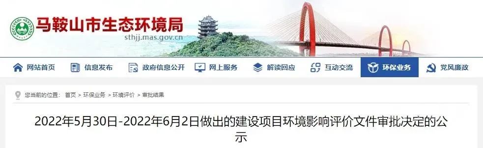 2022年5月30日,安徽省馬鞍山市生態環境局發布關于《馬鞍山海螺綠色建材有限公司安徽省馬鞍山市博望區薛津建筑石料用安山巖礦960萬噸/年建設工程項目環境影響報告表的批復》。《批復》顯示:該項目總投資47.76億元,其中環保投資5170萬元。配套建設骨料機